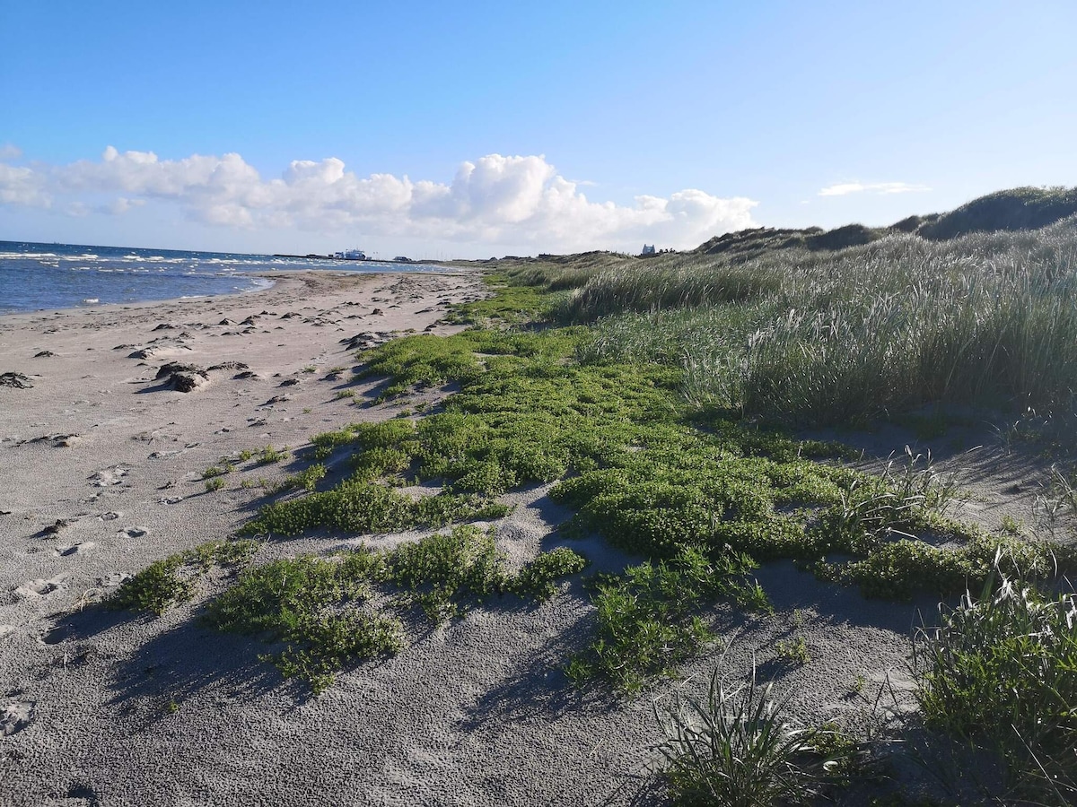 Bu sakit məkanda bütün ailə ilə birlikdə dincəlin. Məkan işıqlı və qonaqpərvərdir. Sizi dincəlməyə və zövq almağa dəvət edən sakit yaşayış məhəlləsində yerləşir. Çimərliyə cəmi 500 metr məsafədə, evin bir çox terraslarından birində səhər qəhvəsindən zövq almazdan əvvəl səhər yeməyi üçün də idealdır. Həm Sæby şəhər mərkəzi, həm də şəhərin füsunkar limanı yaşayış yerindən cəmi 2 km məsafədədir. Evin ətrafında uşaqların ayaq basması üçün bir çox açıq yer var və 300 metr məsafədə bir neçə gözəl oyun meydançası var.