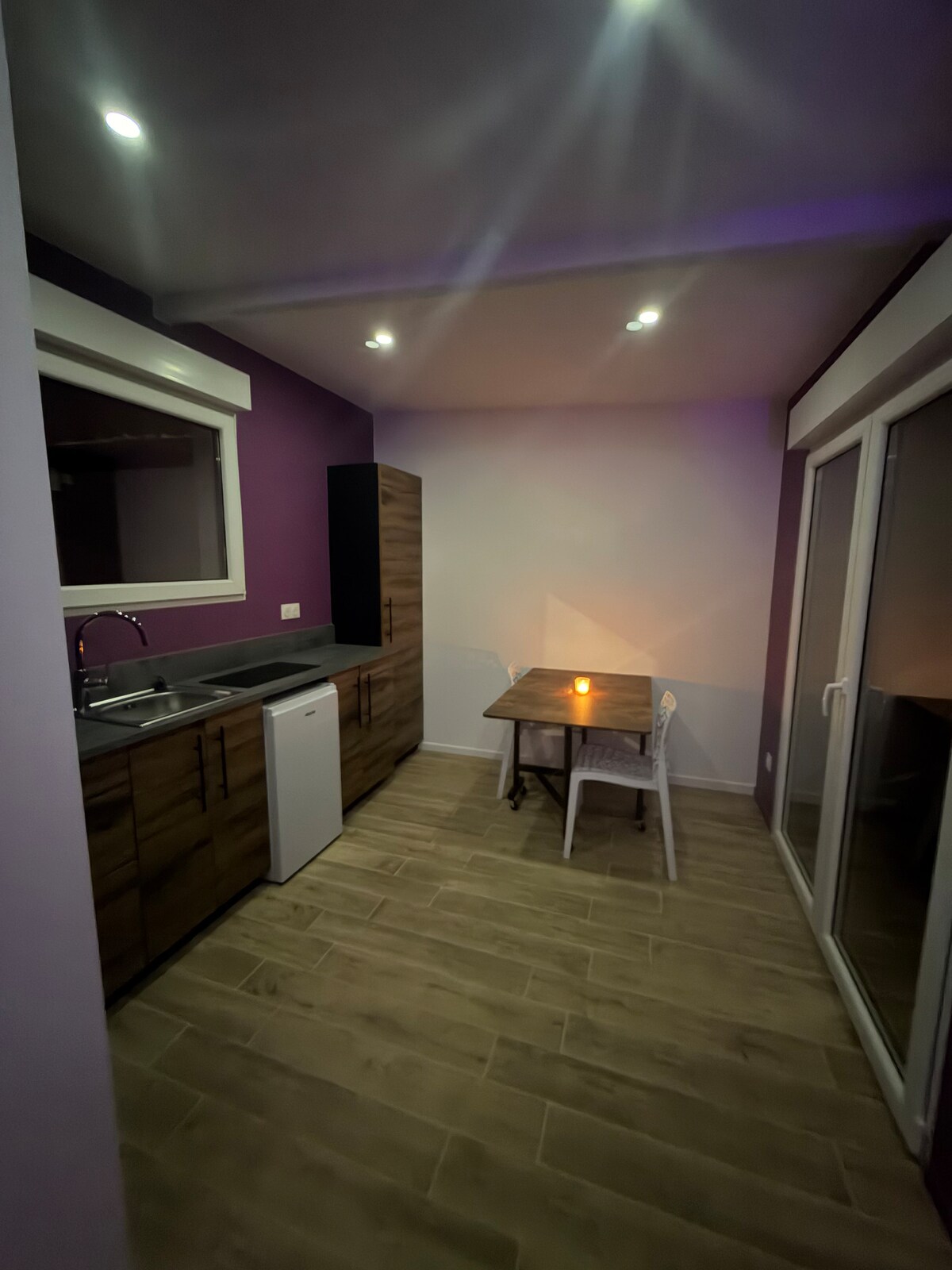 Rahatlıq və səmimiyyət anı üçün lüks xidmət göstərən 65 m² ev. Özəl spa mərkəzi ilə sehrli an: hər qonaqdan sonra boşaldılan cakuzi, sauna, masaj masası və güzgülü yuvarlaq çarpayı. Unudulmaz anlar axtaran cütlüklər üçün unikal təcrübə: "gizli açar" mövcuddur. Tamamilə rahat eksteryeri ilə bütün rahatlıqlarla təchiz olunub. Əmlakın qarşısında pulsuz parkinq yeri. Açar qutusu vasitəsilə giriş. Qarşılama səbəti + içkilər + qəhvə + çay təklif olunur