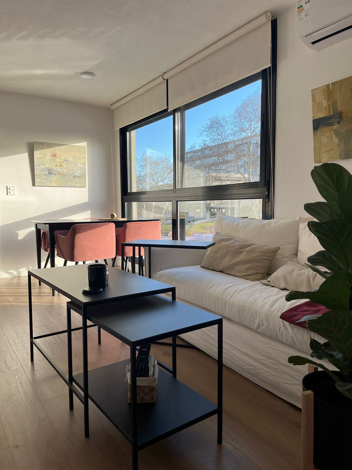 Modern 1-bedroom apartment in Parque Rodó. Bright and quiet, with large double-glass windows. Fully equipped kitchen with fridge, oven, microwave, utensils and tableware. Open living-dining area with 43" Smart TV and a home office space with Wi-Fi. Bedroom with queen bed and balcony access, plus a full bathroom. Excellent location: steps from Parque Rodó and the Rambla, surrounded by cafés, shops, and public transport at the door.