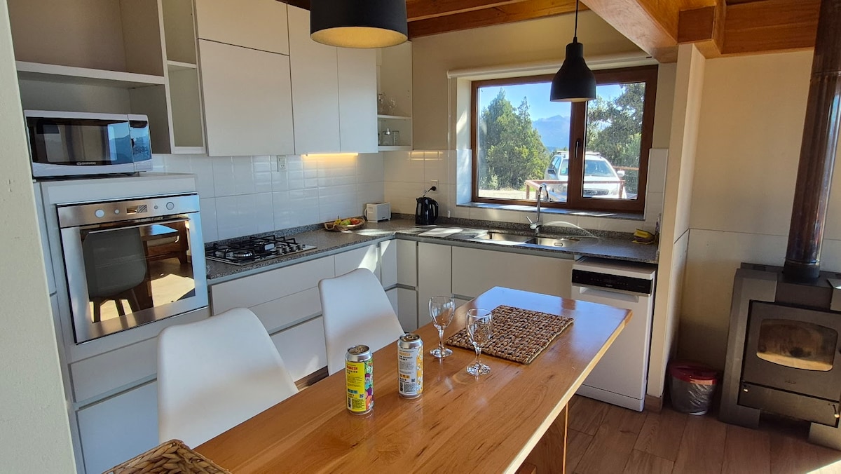Evim təbiətlə əhatə olunmuş və Nahuel Huapinin inanılmaz mənzərələrini təqdim edən böyük pəncərələri olan sakit bir mühitdə dincəlmək və dünyadan uzaqlaşmaq üçün idealdır. Burada 2 yataq otağı, 2 tam hamam otağı və tualet var. Əsas məkana qonaq otağı, yemək otağı və mətbəx daxildir. Mətbəx müasir və tam təchiz olunmuşdur, həm qısa, həm də uzunmüddətli qonaqlamalar üçün idealdır. Rahatlıq, dizayn və təbiətlə unikal əlaqə axtaranlar üçün mükəmməl bir sığınacaq, göl həmişə arxa planda.