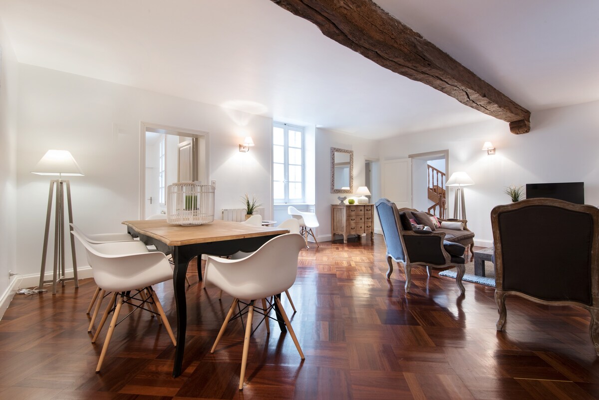 Birinci mərtəbədə 100 m2 sahəsi olan müstəsna appt (4 ulduzlu Meublé de Tourisme Ranking): 2 çam (2 x 2 180 modul çarpayı), böyük qonaq otağı, təchiz olunmuş mətbəx, 4 nəfər + körpə, şəxsi bağda, La-Roşelin tarixi mərkəzində yerləşən Hotel Particulier 18ème otelinin şəxsi parkında. Çox günəşli, mütləq cazibədar, çox sakit. Hər şeyə yaxınsınız: Köhnə Liman, çimərlik, mağazalar, parklar, muzeylər, teatr və Ile de Ré-dən 15 dəqiqəlik məsafədə. SNCF 15 dəq piyada, hava limanı 15 dəq. Bütün yataq dəstləri təmin edilir.