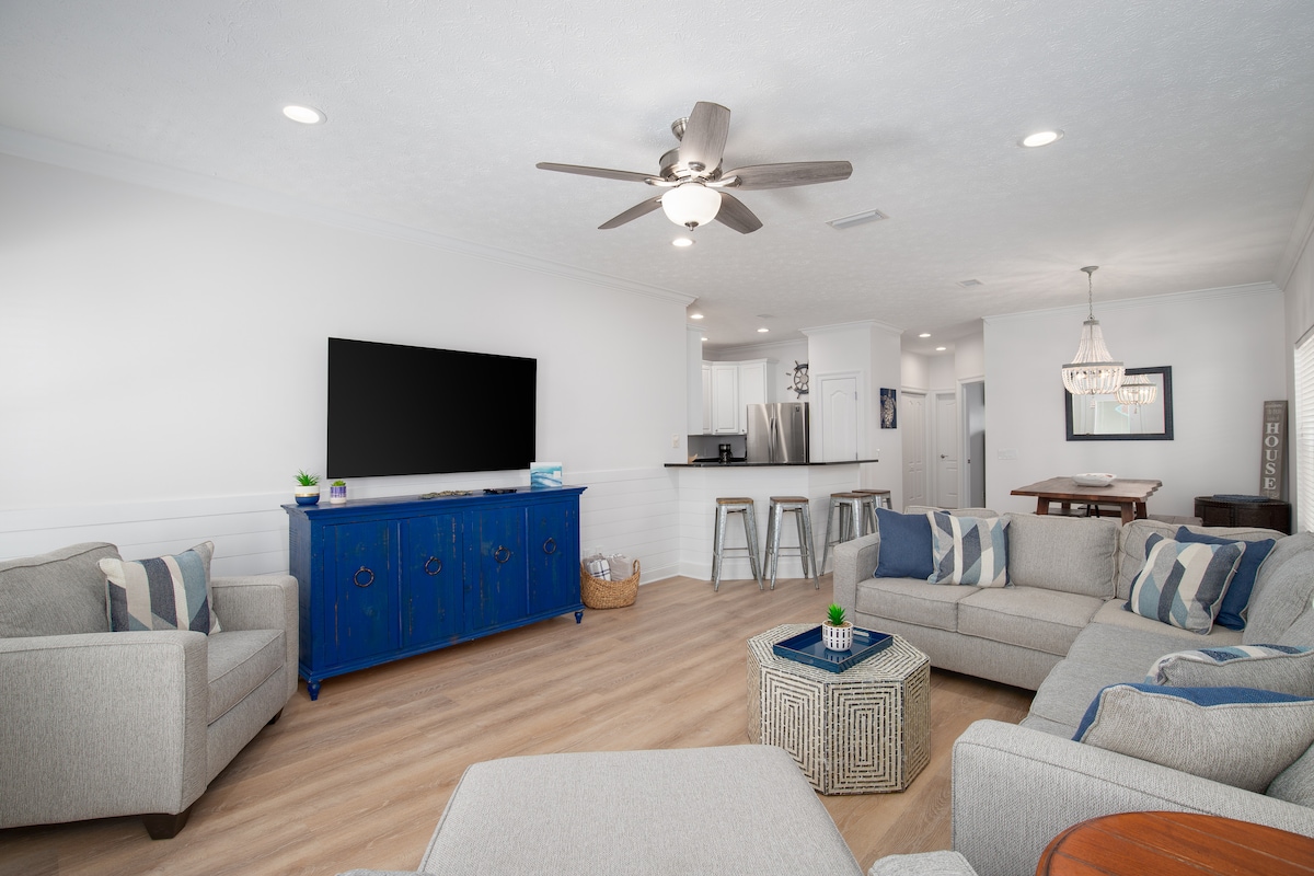 Bu rahat sahil gəzintisinə xoş gəlmisiniz. Hovuzdan, qril üçün örtülü verandadan və göyərtənin yuxarı hissəsindəki gün batımından zövq alacaqsınız. Evdə doqquz nəfər yatır, yeni mətbəx, dincəlmək üçün ailə otağı və işləmək və ya film yayımlamaq üçün sürətli internet var. Çimərliyə cəmi on dəqiqəlik məsafədə, 30A və Pier Parkdan qısa məsafədə olacaqsınız. 170 $ ev heyvanı haqqı ödəməklə it yönümlüük. Maksimum üç it. Hovuz isitmə sistemi 40 $/gün üçün mövcuddur. Təfərrüatlar aşağıda göstərilir.