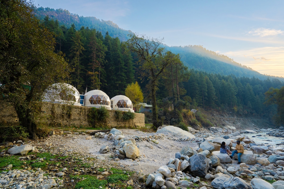 The only geodesic dome in palampur region, with air-conditioning. River and Sunset View.Enjoy the sounds of nature when you stay in this unique place.
