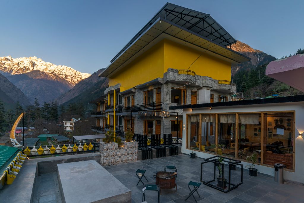It is located right in the heart of Old Manali. We have an excellent location with a mesmerizing view of the valleys & mountains. All rooms have ample sunlight throughout the day. We have a Common space and various options to sit outside as well.