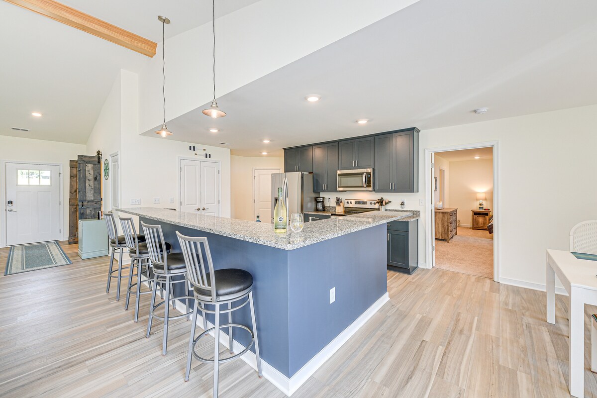 Homeport Harbor is the ultimate lake vacation home! Unwind in this spacious, cozy waterfront retreat located on the public side of Lake Anna! This 1,800 sq ft. home is located on one acre and is beautifully decorated; including completely all brand new furniture, kitchen upgrades and new mattresses throughout. Spend your days relaxing at the water’s edge on the private dock, screened in porch or large deck and your evenings roasting marshmallows gathered around the built-in fire-pit.