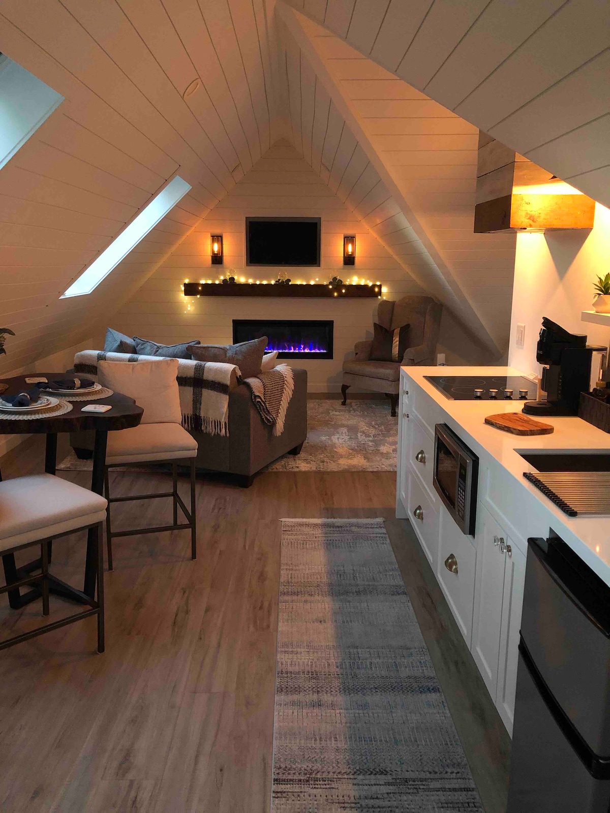 Ferqusun mərkəzində yerləşən müasir və rustik 1860 açıq daşlı, üçmərtəbəli şəhərimizə qaçın. Rahat istirahət məkanımızda kraliça süitası, loft, mətbəx, günəş otağı və qapalı buxarı var. Mərkəzi Elora və Qrand çayından bir neçə dəqiqəlik məsafədə yerləşən tarixi Ferqusda yerləşir. Qrand çayı boyunca yaxınlıqdakı gəzinti yollarından və Ferqus Dağlıq Oyunları, Riverfest musiqi festivalı və bir çox kulinariya sərgüzəştləri kimi hər il keçirilən festivallardan zövq alın. Hər şeyin mərkəzində yerləşən bu tətil məkanında dincəlin və dincəlin.