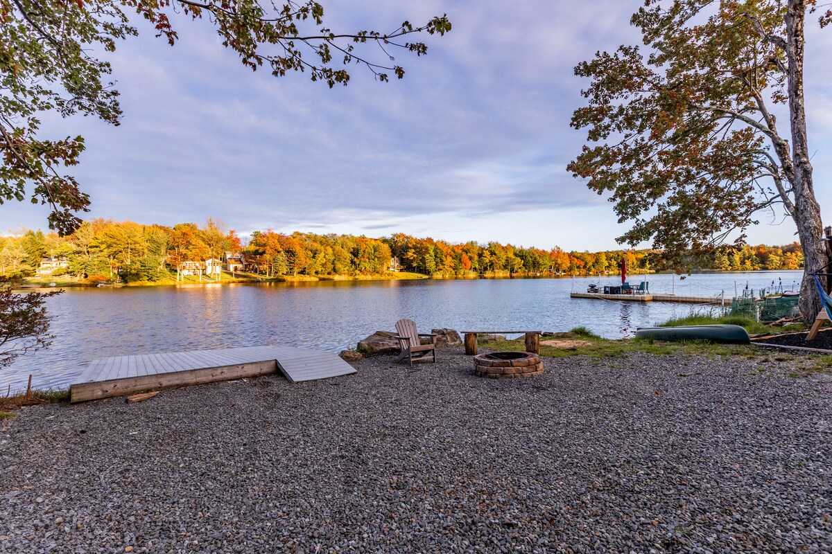 Yay imkanları olan qapalı icmada sakit bir küncdə yerləşən rahat gölkənarı dağ evi. Kamobet gölündə xüsusi doku olan xüsusi meşəlik kvartaldan zövq alın və veranda qapıları olan göyərtədə dincəlin ki, buxarı ilə çöldə və ya içəridə olarkən gözəl göl mənzərələrindən zövq alasınız. Kalahari, Camelback, Pocono Raceway, The Crossings Shopping Outlet, Mt Airy Casino və Great Wolf Lodge daxil olmaqla region turistik yerlərinin əksəriyyətinə qısa məsafədə yerləşir.