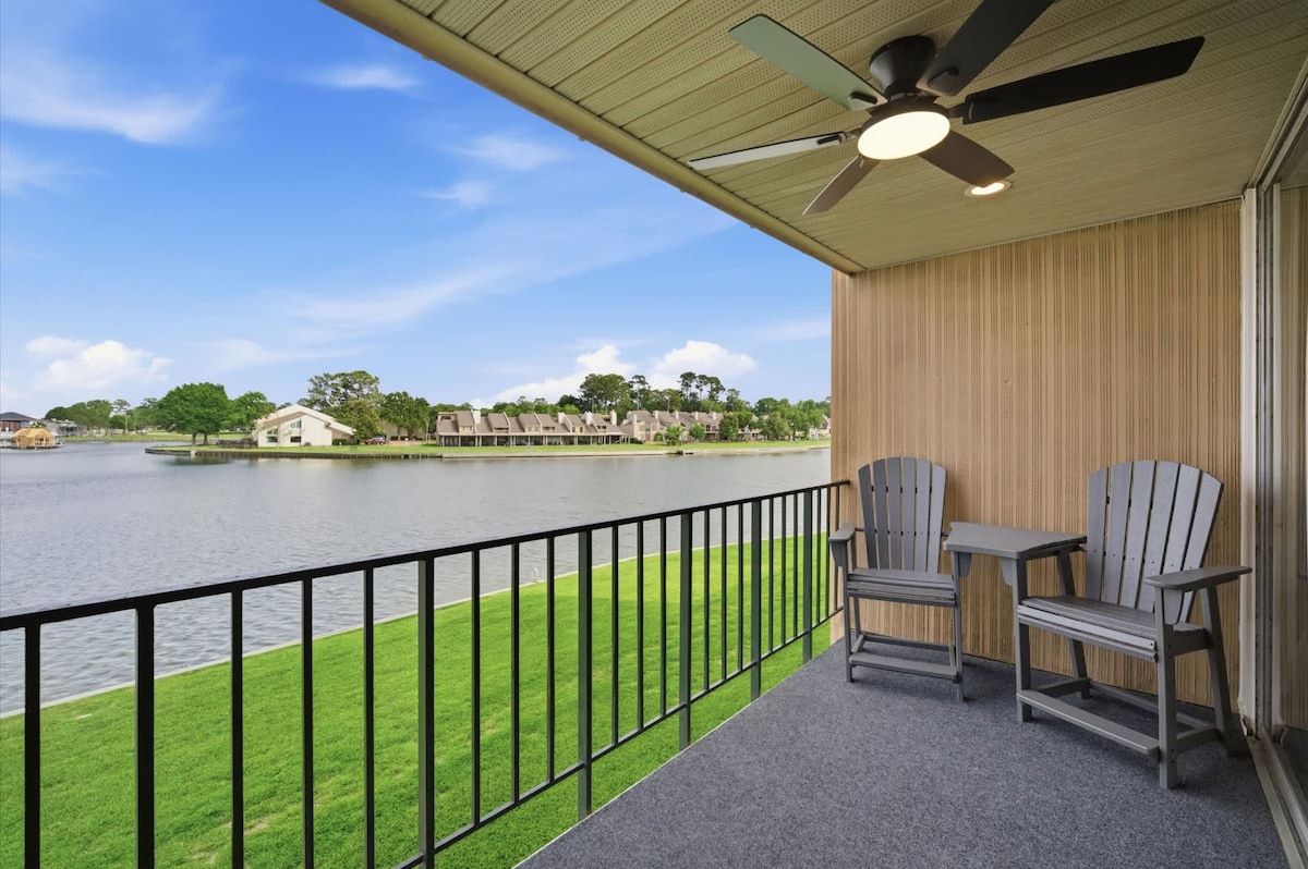 Wake up to lakefront views at Walden on Lake Conroe. This 1-bed, 1-bath condo is perfect for 2 guests, featuring a king bed, fully equipped kitchen, washer/dryer, fast Wi-Fi (300 Mbps) and a private balcony. Enjoy resort-style community amenities: pools, fitness center, tennis & pickleball, hike-bike trails, and boat ramps. Pet-friendly with free parking, ideal for couples or solo travelers seeking a waterfront retreat!