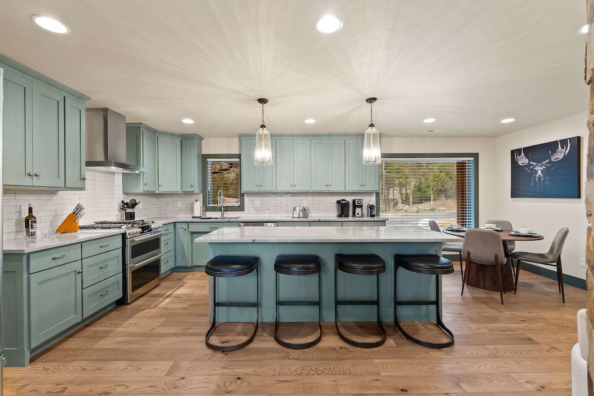 Ayrıca girişi olan gün ərzində daha aşağı səviyyədə işıqlandırılmış 2000 kv metrlik örtülü eyvandan böyük göy ölkə mənzərələrindən zövq alın. Burada 6, 2 tam hamam otağı, ayrıca oyun otağı olan böyük ailə məkanı olan 3 yataq otağı var. İldırım sürətli Starlink internet xidməti, Roku TV və öz cihazlarından mövcud olan yayım. Düzbucaqlı gölə, Qara quyruqlu xizək kurortuna, Miras Velosiped Parkına və Buzlaq Milli Parkına qısa məsafəyə yaxın