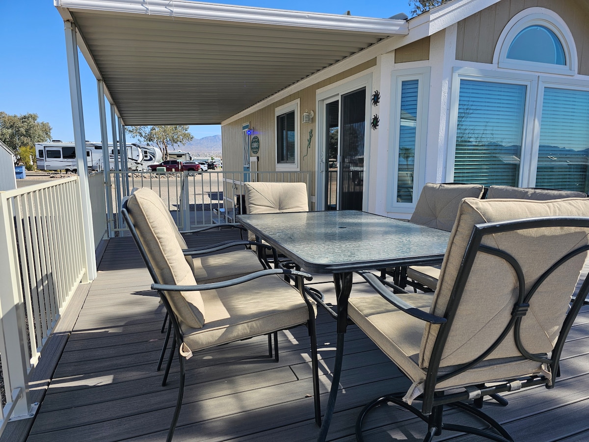 780 sq ft of private indoor space; a place to call home in Havasu. Perfect for a romantic getaway or quiet relaxation! Comfy King bed in the bedroom, a full-sized murphy bed in the living room, kitchen, dining area, flat screen TV, fast WIFI, air conditioning, tiled walk-in shower. Shared outside patio/pool/hot tub and putting green. -Sparkling HEATED Pool and Hot Tub -Mini putting green for fun and laughter. We have clubs and golf balls. -Many Comfortable outdoor seating areas.