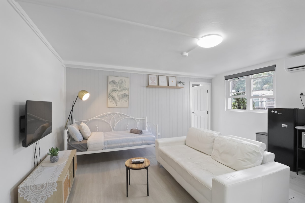1 yataq otağı bloku (yeni Kraliça Plyus Koala döşəyi) və genişlik. Tam mətbəx. Təmir 2024-cü ilin dekabr ayında tamamlandı.. Bu sakit, dəbli məkanda dincəlin və dincəlin. Bir tərəfdə Macquaire gölünü okeana birləşdirən gözəl aydın su kanalı çimərliyindən keçirsiniz. Okean çimərliklərinə çıxışı olan başlığın digər tərəfində. Masa və divanı olan açıq hava sahəsi. Küçədə pulsuz parkinq, evə aparan avtomobil yolunda park etməyin. Lazım gələrsə, 2-ci avtomobil yolundan istifadə edin