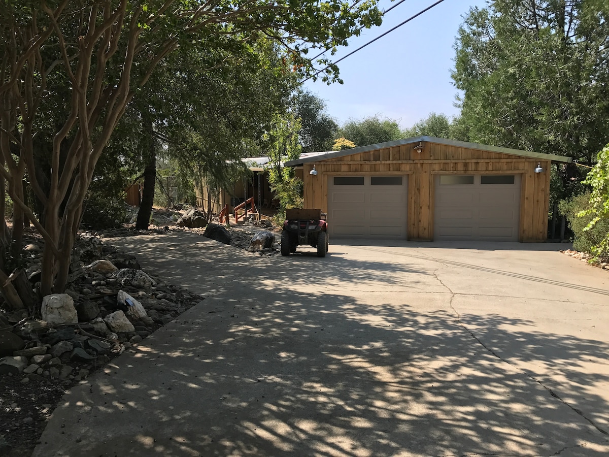 Enjoy this private couples retreat located 32 minutes from the South entrance of Yosemite. Gaze out at a sierra sunset while grilling on the back porch. Cozy up by the electric fireplace, or outside by the fire pit. Play a game of frisbee golf, corn hole, pool or ping pong. Enjoy a glass of wine while watching your favorite show on the big screen tv. We are 7 minutes from downtown Oakhurst to and 18 minutes from Bass Lake. Local tips and hikes from former Yosemite Rangers.