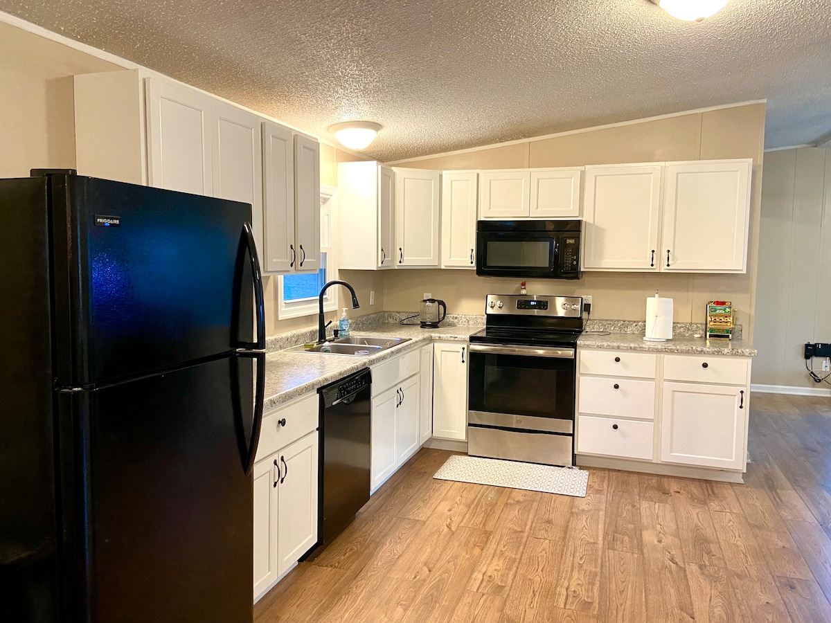 Sehrli Tug/Houseboat-a üz tutun! Bütün müasir şəraitli, tam təchiz olunmuş mətbəx, tam təchiz olunmuş vanna otağı, AC, istilik və WIFI ilə yeni təmir olunub. Tug 5+mil yürüyüş/velosiped yolları ilə 142 Wooded Acres-də 8 akrlıq xüsusi Göl w/Island-da üzür. Üzgüçülük, Kayakinq, Sup, Balıqçılıq, Gəzinti, Velosiped, Araşdırmaq və ya sadəcə yanğın çuxuru ilə öz çimərliyinizdə dincəlməkdən zövq alın. Göl ətrafında qısa bir gəzinti ilə ferma heyvanlarına baş çəkin...Teo İnək, Qoyun, keçi, hinduşka, ördək, toyuq və dovşanlar.