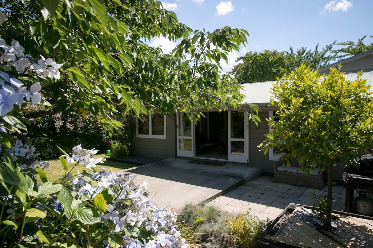 Nestled in the peaceful area of the Botanical gardens is our place to rest and recharge your mind and spirit. Our retreat is opposite the vast reserve surrounding you with bird song and walks into the lush New Zealand native bush. We have a secluded courtyard to sit and contemplate whilst having a glass of wine and reading magazines from our selection. Enjoy an easy bike to town or "The Lions Walk" on the lakefront on our electric bikes, a super way to see the sights and come home smiling.