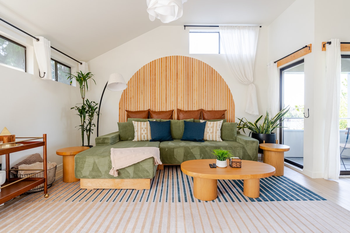 Vintaj füsunkarlığı, yerli incəsənəti və Ross Parkına baxan xüsusi göyərtəsi olan parlaq, rəssam dizaynlı istirahət məkanı — Fremont Bespoke-dəki Sunbreak Suite-ə ☀️ xoş gəlmisiniz. Düşünülmüş məqamlara ev sahibinizin əl işi olan qonaq hədiyyələri, tam mətbəx, mənzərəli iş sahəsi və rahat salon daxildir. Cığırları, parkları və Sietlın ən yaxşı məhəllələri olan 25+ kafe, bar və mağazalara gedə bilən 4 nəfər yatır.