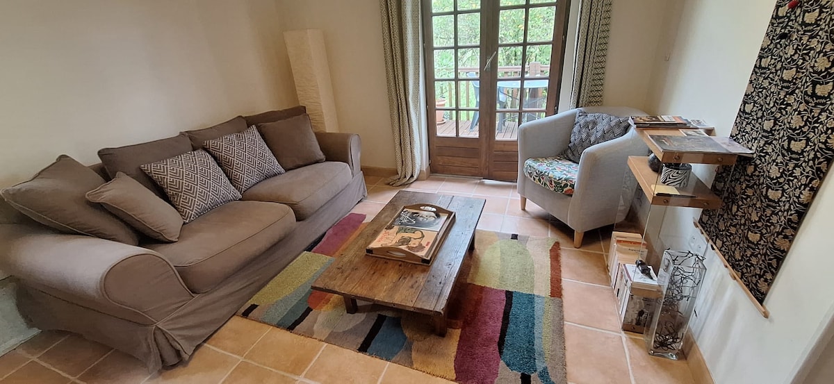 Cazibədar kiçik müstəqil ev, o cümlədən 1 böyük qonaq otağı, 1 böyük qonaq otağı, bar, soba, qabyuyan maşın, soyuducu, dondurucu, mikrodalğalı soba, 1 mezzanin yataq otağı 160-da 1 çarpayısı olan qonaq otağına açıqdır, Duş və tualetli 1 duş otağı. Düz ekran televizor, DVD pleyer, hi fi kanalı, stolüstü oyunlar, kitablar, cd, Dvd, paltaryuyan maşın. WiFi Taxta torpaq. Sakit və bukolik mühit... Barbekü, bağ mebeli ilə gözəl terras. Giriş zamanı çarpayı hazırlanır.