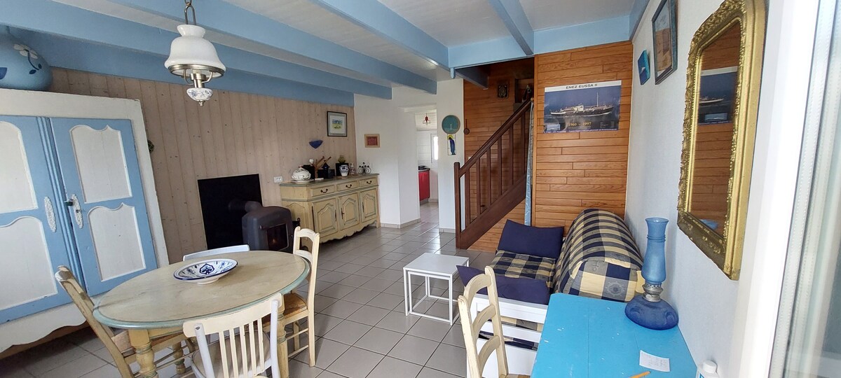 Evin birinci mərtəbəsi (qonaq / yemək otağı, mətbəx, duş otağı /wc) və yataq otağının üstü var. Bu, iki nəfər üçün idealdır, şimal sahilindən atılan daş. Körpə və ya azyaşlı uşaq üçün: çarpayı, park, uşaq üçün yemək stulu. İkinci cütlük yerləşdirilə bilər (birinci mərtəbədə divan çarpayı). Veranda küləyin sığınacağında çöldə nahar etməyə icazə verir... Balıq ovu dövründə balıq təklif olunur.