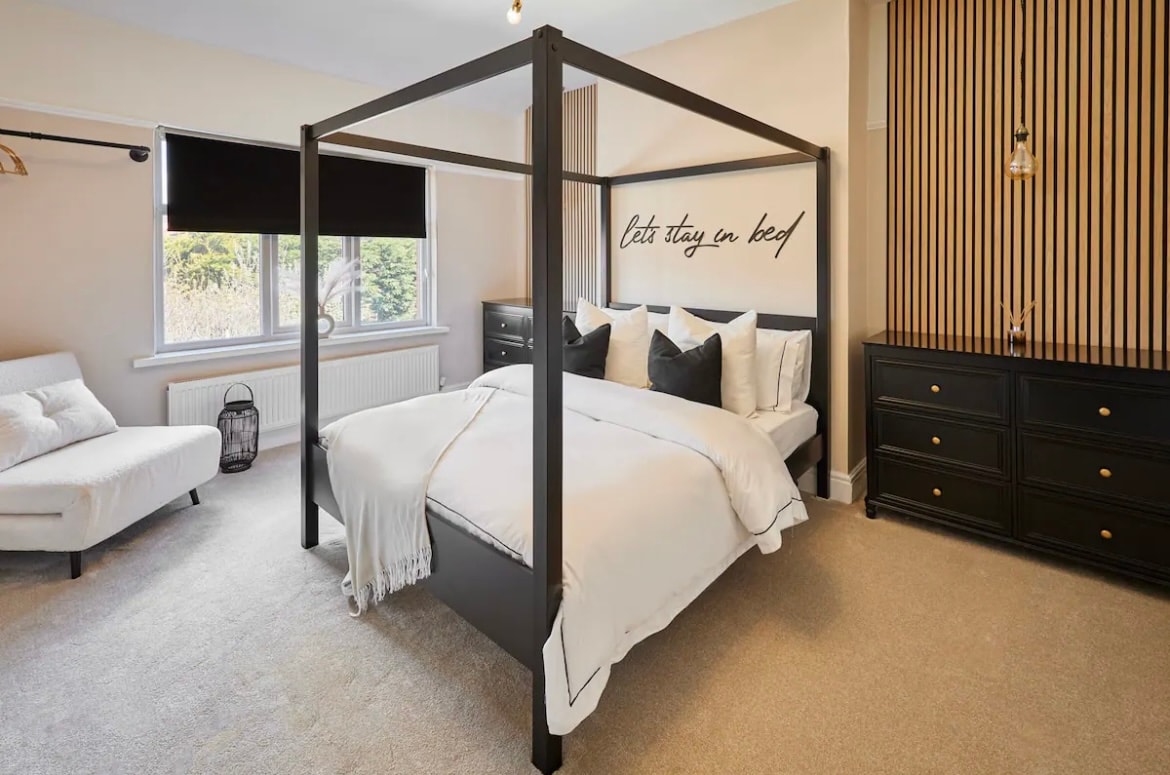 Welcome to Manley Road House. Set up for groups and longer stays, this six-bedroom home sleeps up to 15 with 9 beds, a private hot tub, and a dedicated cinema room with projector screen. There’s also a games and fitness room with pool table, table tennis and treadmill, plus a modern kitchen, laundry and workspace for working weeks. A calm base in Rochdale with easy access into Manchester.