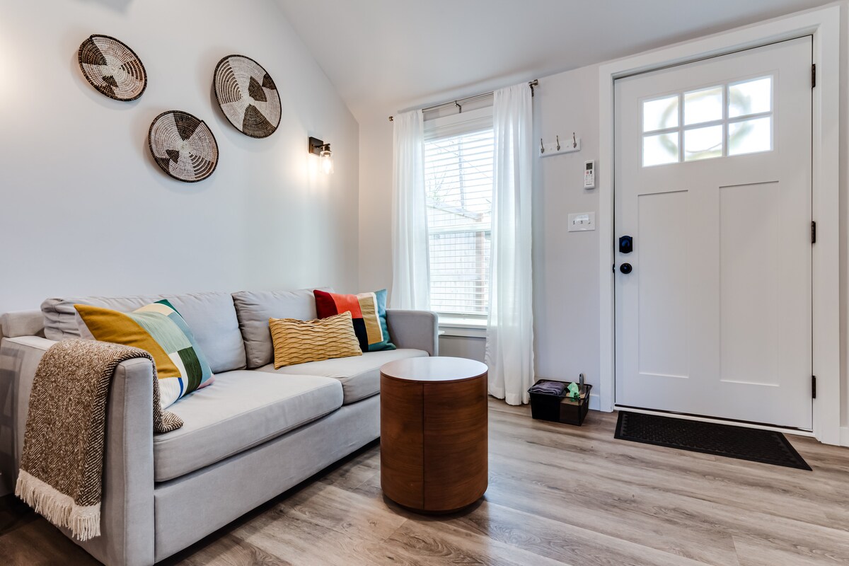 Parlaq, təmiz, xüsusi girişi olan Kollec Təpəsi 1 düymlük süita. Mənzildə balaca mətbəx (w/Keurig, toster sobası, mikrodalğalı soba, jr. soyuducu və isti boşqab), hamam otağı/duş və paltaryuyan və quruducuya giriş var. Daha 2 qonaq üçün ikinəfərlik çarpayıya çevrilə bilən futon divanı var (FWIW adi çarpayı qədər rahat deyil). Wi-Fi, televiziya (w/Roku) və Bluetooth dinamik əyləncə üçün təmin edilib. Restoran və barlara gəzinti məsafəsi. Universitet daha bir neçə blokdan ibarətdir.
