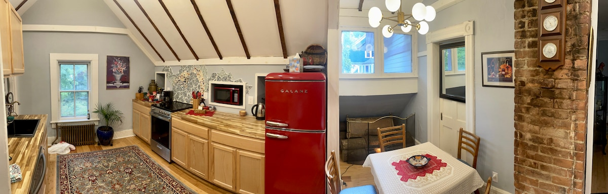 Large bi-level 4 bedroom apartment tucked away on a hilltop oasis above Mass MoCA (3 mins by foot). 10 mins drive to Williams College & Clark. Whimsically restored (fast Wi-Fi & great water pressure). Fully private with no shared spaces + outdoor Sauna! Your stay’s proceeds allow us to host refugee/immigrant musicians pro bono year-round at @chasehillartistretreat Note: more dates are often available beyond what the calendar shows. Please don’t hesitate to inquire!