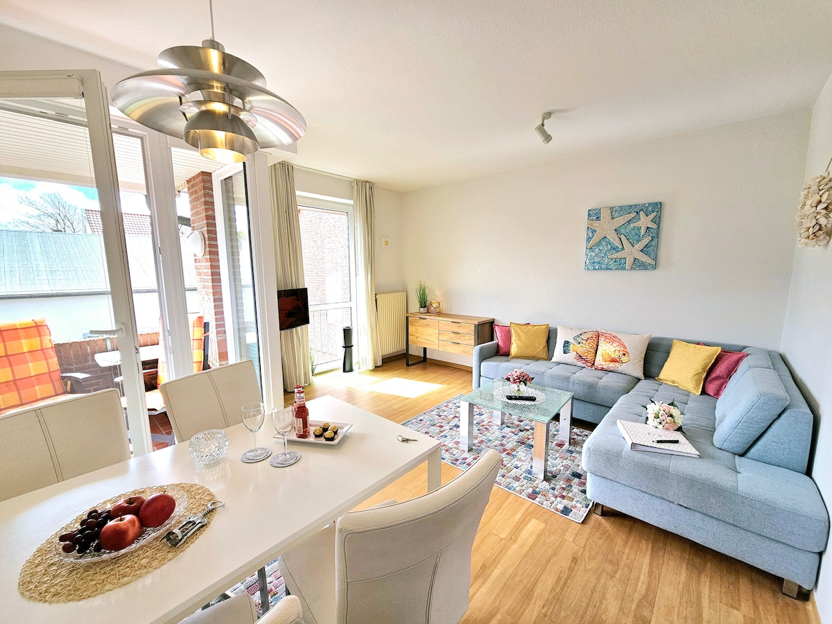 Freut euch auf einen entspannten Aufenthalt in unserer gemütlichen und zentral gelegenen Etagenwohnung. Die Wohnung eignet sich ideal für einen Urlaub zu zweit oder auch, um einfach mal ein paar Tage alleine zu entspannen. Zu der Wohnung gehört eine großzügige Terrasse mit kleiner Rasenfläche. Der obligatorische Gästebeitrag, der für die Gemeinde Norden-Norddeich gilt, wird von uns separat erhoben. Eure Gästekarte erhaltet ihr von uns bei eurer Ankunft.
