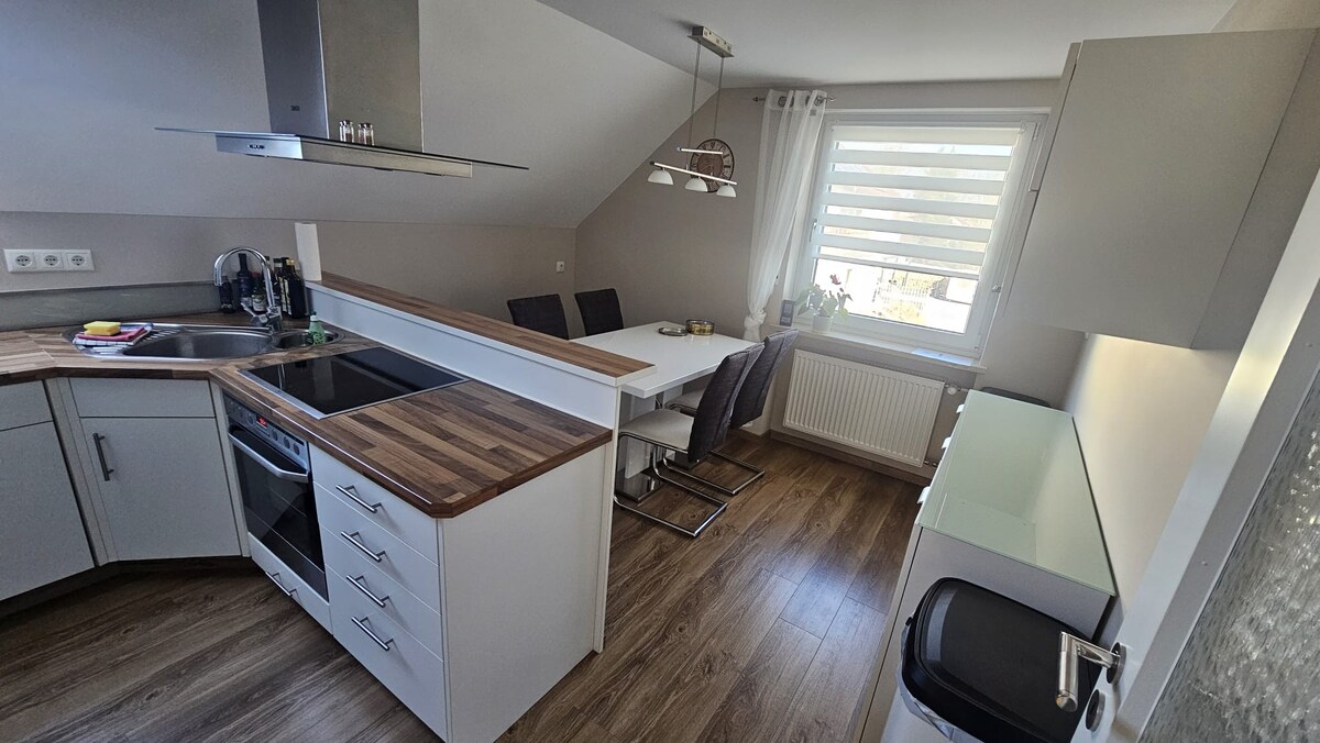 Bu rahat mənzil Svabian üslubundadır. Həmçinin uşağı olan iki nəfər (2) kiçik məkanda fasilə üçün lazım olan hər şeyi tapacaq (həmçinin 3 böyük).+1K). Tam təchiz olunmuş balaca mətbəx var. Qonaq isitməni özü tənzimləyə bilər. Tualet, çanaq, duş, əlbəttə ki, ilıq su, paltaryuyan maşın, kənd mənzərəsi olan hamam otağı. Çıxan çarpayı divanından (160x200) əlavə, qalereyada başqa bir çarpayı (100x200), eləcə də kotan (70 x 160) var.