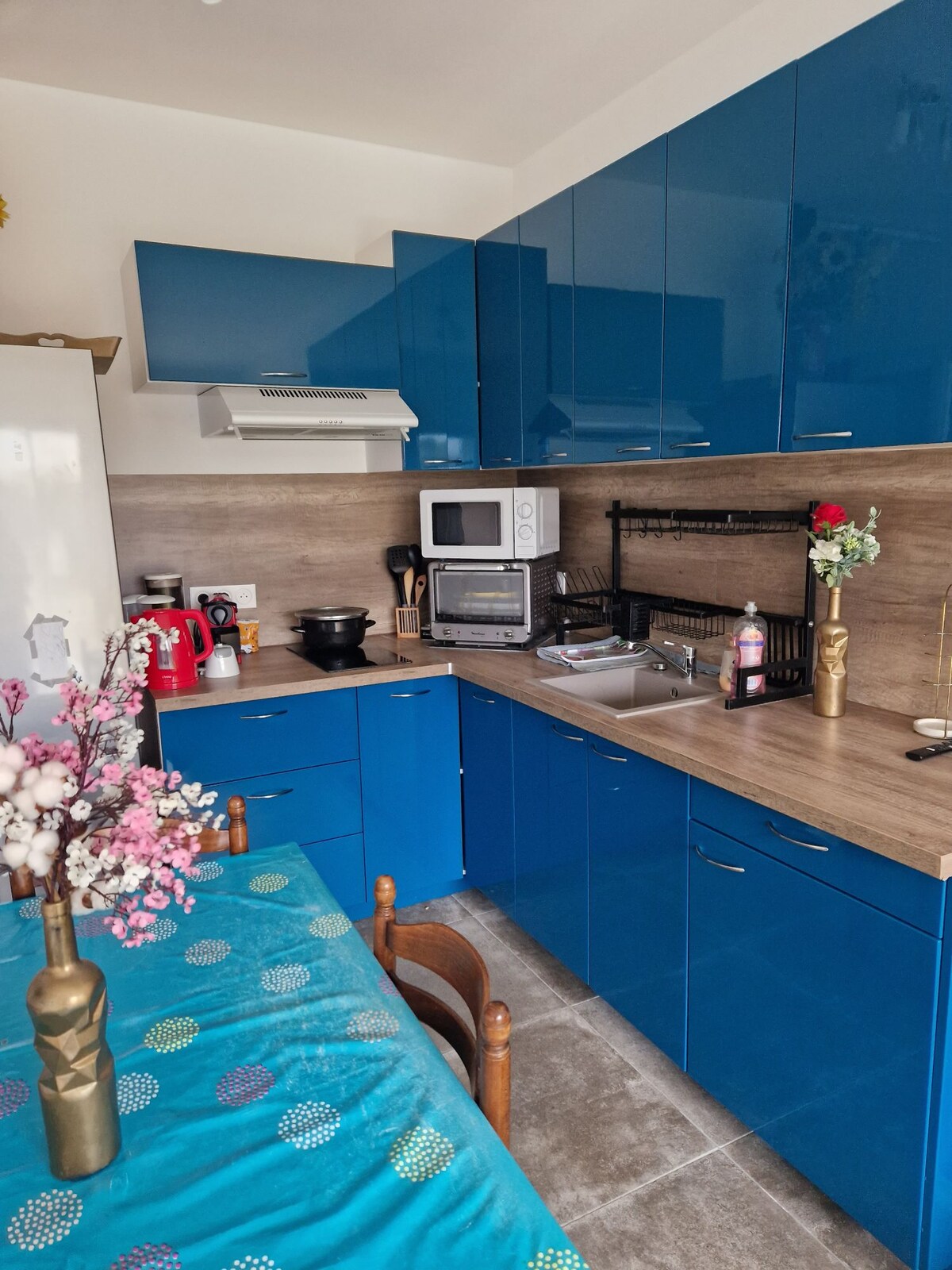 Dənizdən 15 dəqiqəlik məsafədə, xoş bir kənddə, sakit, Nîmes və Monpelye arasında. 60 m2-lik ev (2 yataq otağı, hamam və tualet, qonaq otağı, həyəti olan mətbəx). Müasir və rahat dekorasiya. Regionumuzu araşdırmaq üçün çox gözəl pied-à-terre. Saytda sizə bələdçilik edə bilərik! Asan, təhlükəsiz və pulsuz parkinqin qarşısında və ya yaxınlığında.