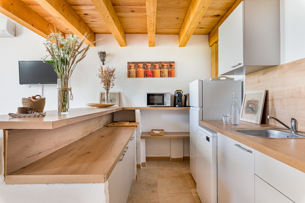 Yaşıllıqlarla əhatə olunmuş, 65 kvadratmetrlik 4 ulduzlu mebellə təchiz edilmiş turizm əmlakı. Şəxsi terrasdan palıd və şam ağaclarından ibarət meşəyə və təpələrə baxmaq olar. 150-179 sm ölçülü çarpayısı (otel keyfiyyəti) və bitişik hamamı olan yataq otağı + 2 tək çarpayılı divanlı qonaq otağına baxan tam təchiz olunmuş açıq mətbəx. Tam imkanlar, ev sahibləri ilə paylaşılan hovuz Qonaqlar istəsə, ərazidəki ən yaxşı yerləri məmnuniyyətlə müzakirə edərik.