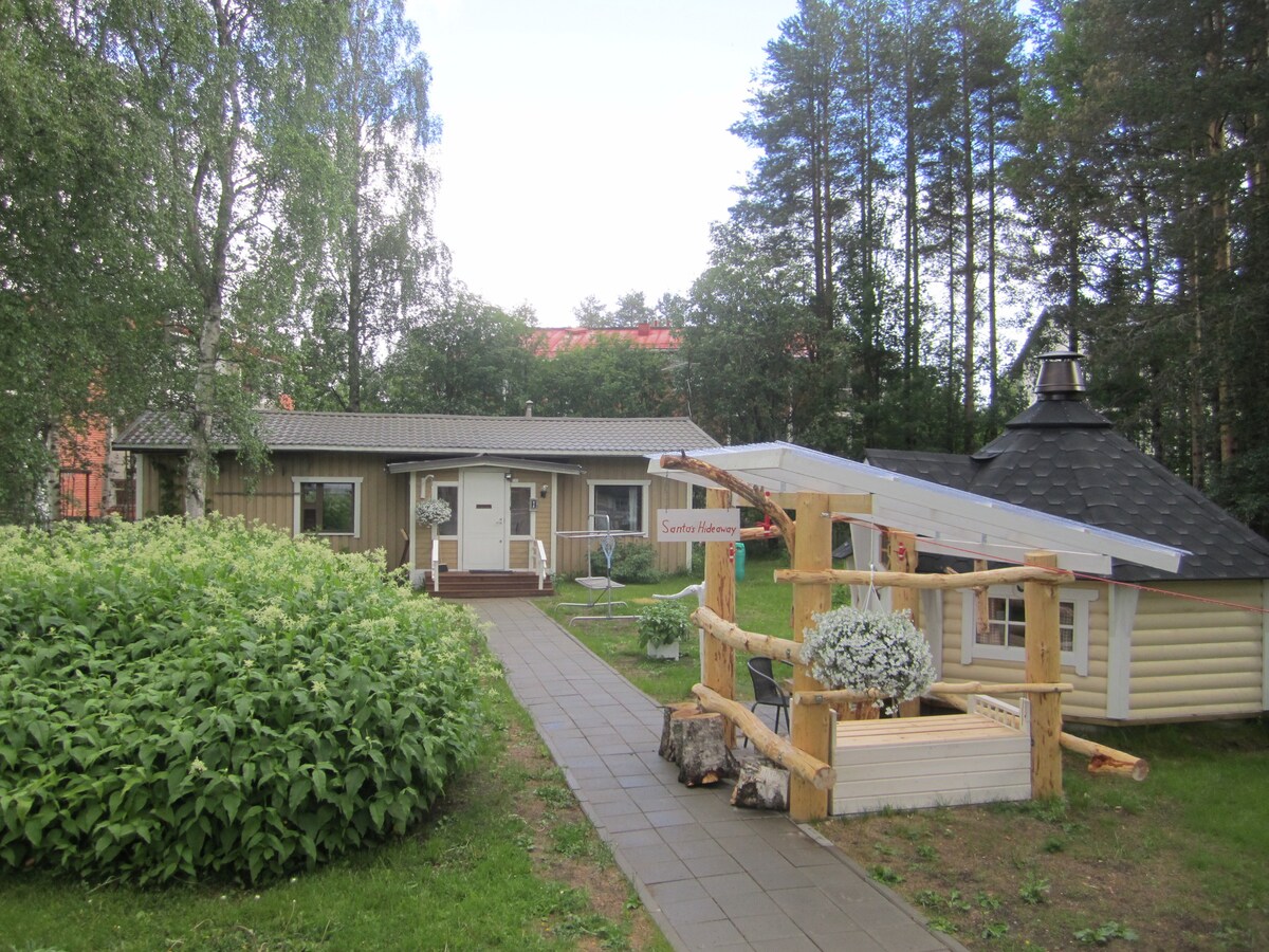 Santa 's Hideaway gözəl və rahat ətrafı olan rahat kiçik evdir. Mətbəx, qonaq otağı, iki yataq otağı, duş, sauna və tualet var. Qış vaxtı da ölkə gəzintisinə çıxa bilərsiniz, alight xizək cığırı olduqca yaxındır. Mənzil şəhər mərkəzindən iki kilometr, hava limanından 11 kilometr məsafədə və Şaxta babanın iradəsində yerləşir. Ən yaxın ərzaq mağazası cəmi 200 metr məsafədədir.