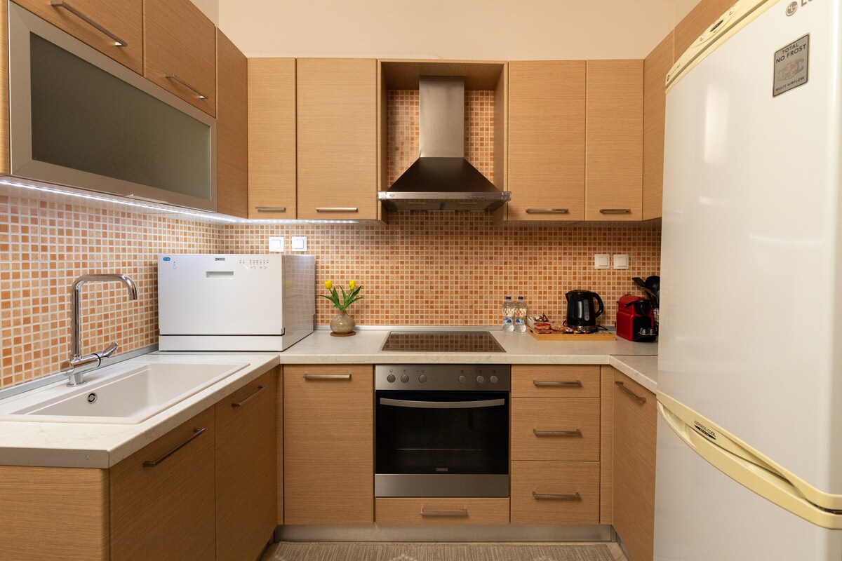 A wonderful, cosy & comfortable semi-basement studio (bedroom, living room, kitchen, bathroom, office) in one of the most beautiful neighborhoods of Larissa. It has individual natural gas heating and is furnished and equipped with all modern comforts (cable TV, Internet 100Mbps etc). It is worth noting that all the furniture and appliances are brand new and were chosen with passion exclusively to meet the needs and requirements of Airbnb visitors. We will be happy to offer you a pleasant stay!