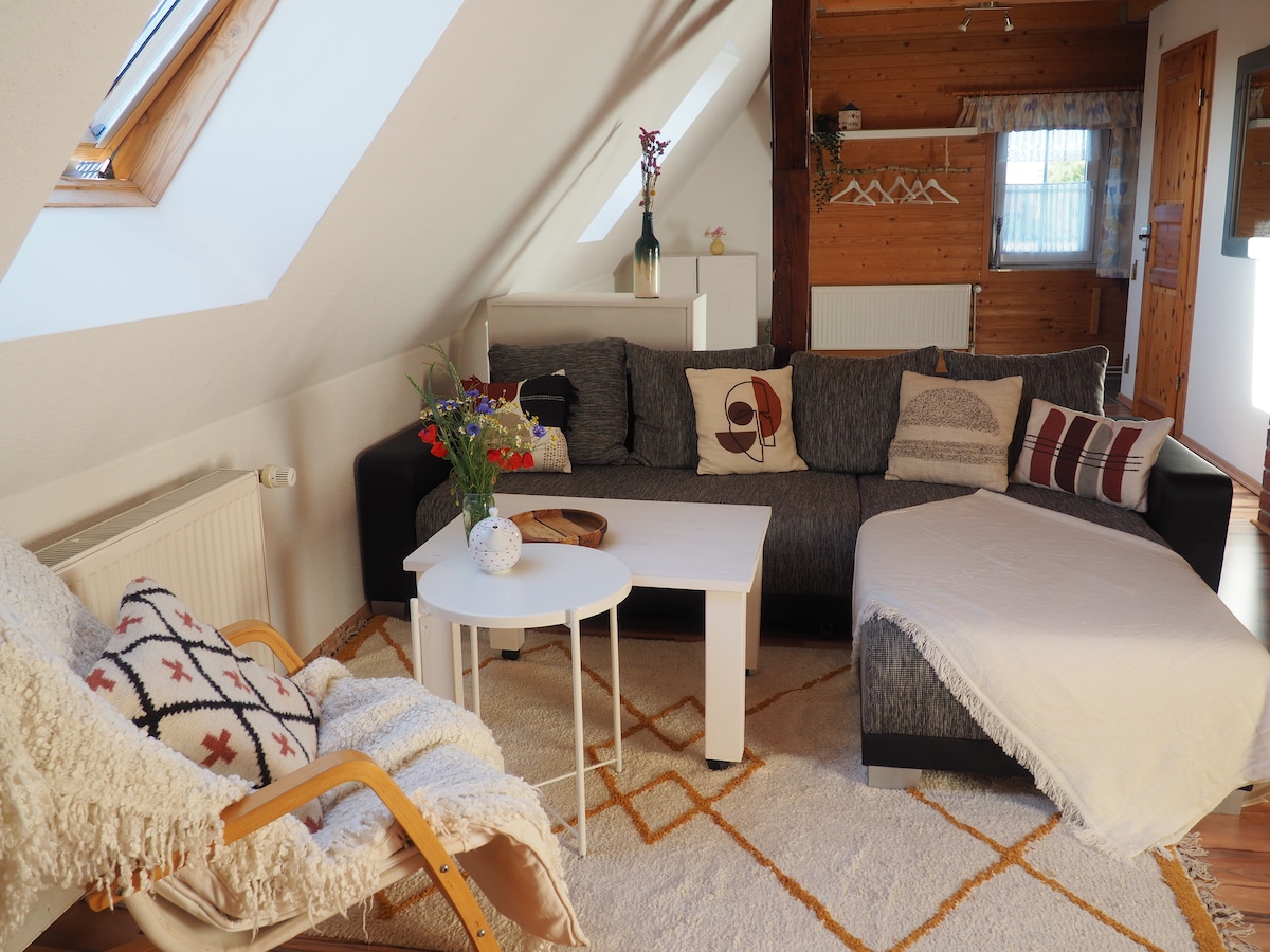 Sizi mənzərəsi olan rahat çardaq mənzilimizə dəvət edirik. Maksimum 5 nəfər üçün yer var. Mənzil Mecklenburq-Vorpommernin mərkəzində rahat tətil üçün lazım olan hər şeylə təchiz olunub. Yayda terrası və çoxlu yaşıllığı olan bütöv açıq hava sahəsi/həyət də mövcuddur.