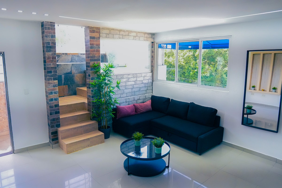 Confortable apartamento, primer nivel. Discreto e íntimo. Apartamento completo 2 baños Sala-comedor Cocina TERRAZA CON JACUZZI PRIVADO. Bien ubicado cerca de centro comerciales como: Plaza Duarte-Carrefour, Pricesmart, Supermercado Bravo , Plaza Lama , La Sirena. Todos a menos de 12 minutos. *El jacuzzi se apaga de manera automatica a las 3 horas *Bbq: puede tener costos adicionales *Este apartamento está entre Don Honorio y el Condado.