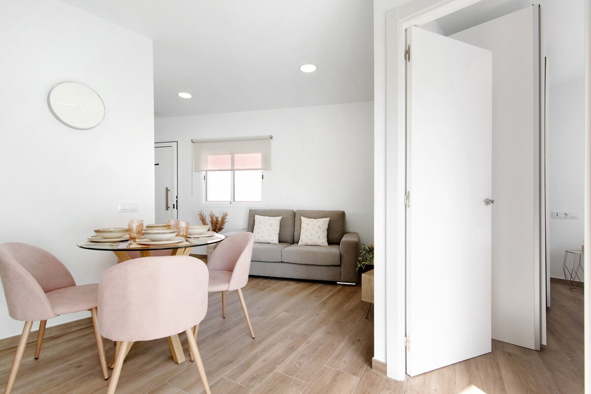 Terrace RENOVATED in May 2024. Elegant and new Studio Design with a huge terrace to enjoy the weather of Gran Canaria. Central, with all services around: supermarket, pharmacy, restaurants, shops. Bus and taxi stop just in front of it. 10 min by car from the airport and 15 min from best beaches. Located in the center of Vecindario, in front of small park place, just beside of Tourism information office. For long stays you can have a cleaning service for a small charge.