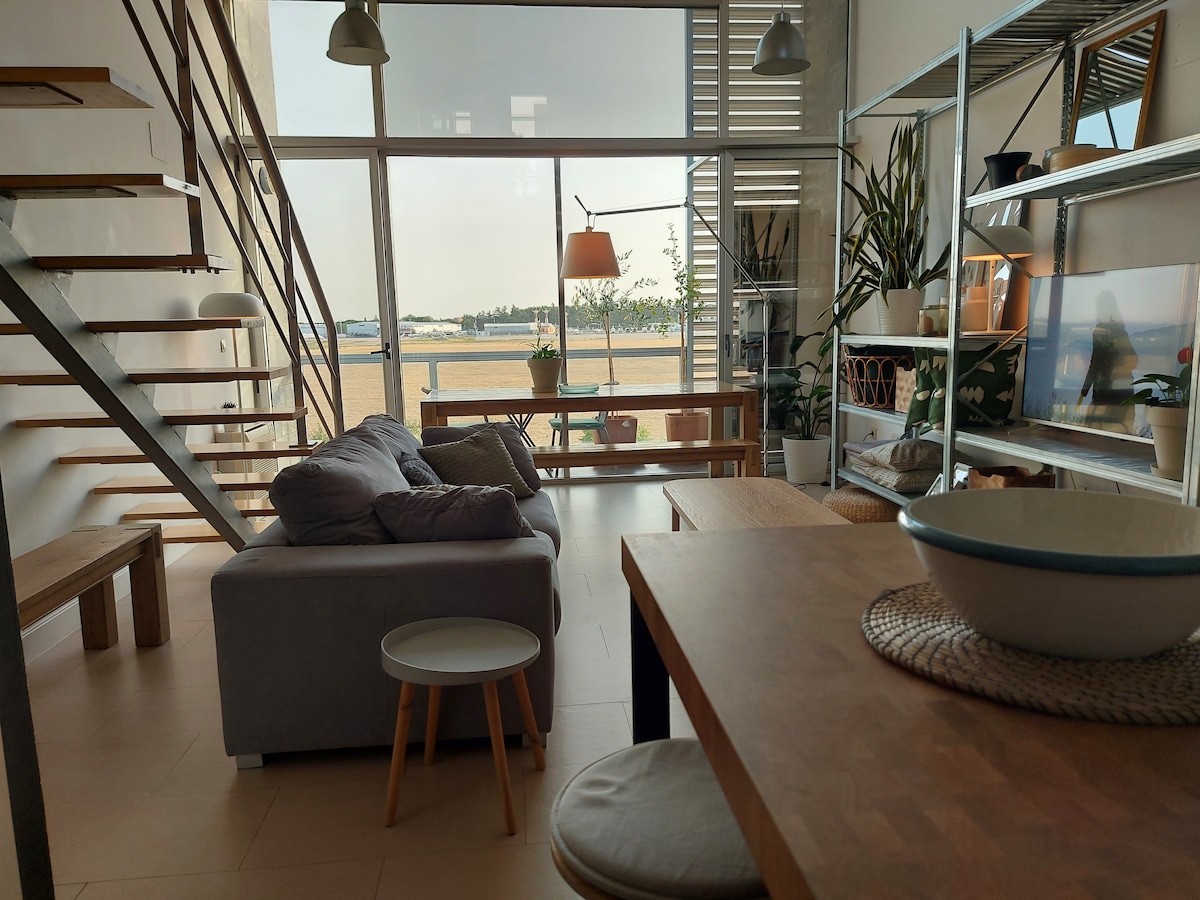 Salam, bu yaxınlarda təmir edilmiş və geniş lofta çevrilmiş Barajasdakı bütöv mənzilimizi təklif edirik. Burada kondisioner, istilik sistemi, mətbəx, paltaryuyan maşın, Wi-Fi, SmartTv... mümkün qədər yaxşı qonaqlama keçirməyinizə çalışmaq üçün bütün komfortlar var. Parlaq və çox sakitdir, dincəlmək üçün heç bir probleminiz olmadığını və Metro Barajas stansiyasından 500 m məsafədə, tarixi mərkəzin inanılmaz bir yerində yerləşdiyini görəcəksiniz. IFEMA və HAVA LİMANI qapının yanındadır! *Licencia del Ayto. de Madrid