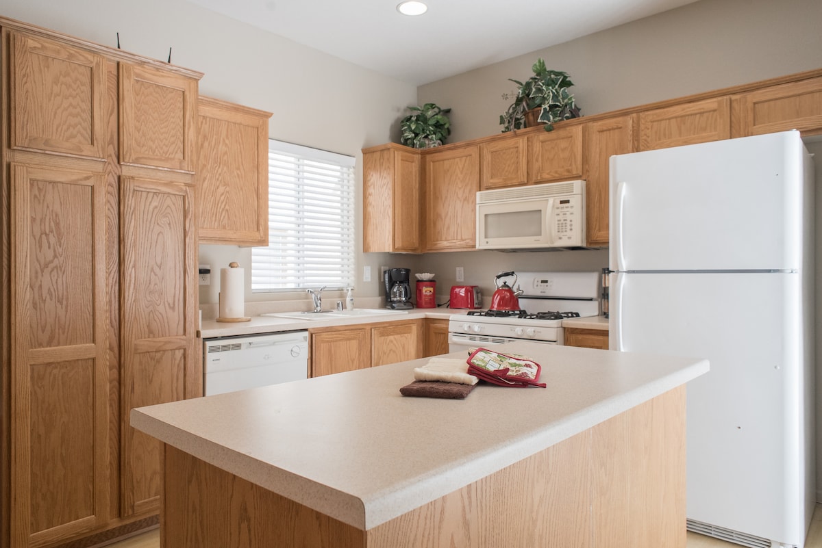 Sanitarlaşdırıldı VƏ DEZİNFEKSİYA edildi!! 3 yataq otağı / 2,5 hamam evimizdə evin bütün rahatlıqları buradadır. Təmizlik işimizə hər şeyin sanitarlaşdırılması və dezinfeksiya edilməsi daxildir, çünki hər şey Lysol ilə silinib. "SİQARET çəkməyin VƏ YA bizim evimizin İÇƏRİSİNDƏ ALAQ OTLARI olmamalıdır."Toster, qəhvə maşını, soba/soba, soyuducu, qazan/tavalar, fincan, boşqab və sairə ilə təchiz olunmuş gözəl ölçülü mətbəx var. Paltaryuyan və paltarqurudan maşın var. Ağıllı TV böyük ekranımız üçün HI Sürətli İnternetimiz var.