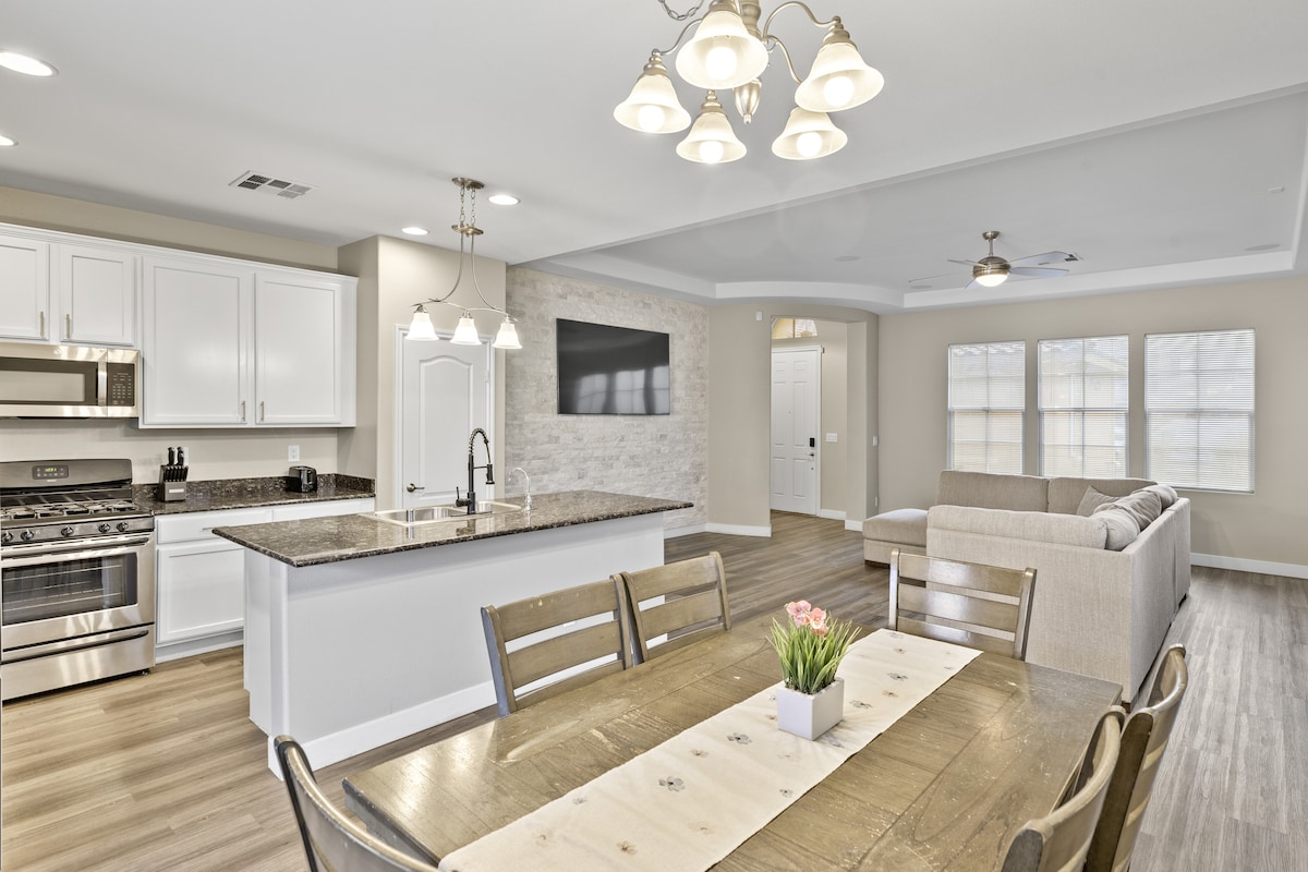 Bu mütləq Möhtəşəm 3 Yataq otağı+Loft Evi çox gözəl və təmizdir. İki-otaqlı Boya, diaqonal Kafel və Bambuk Döşəmə, Tavan Azarkeşləri t/o, Pəncərə Şifrələri, Qranit Sayğaclar, yüksək səviyyəli SS Məişət Texnikası, Culligan Su Filtrasiyası, Paltaryuyan/Fen, Örtülü Veranda və daha çoxu! Özünüzü evdəki kimi hiss etmək üçün lazım olan hər şeylə yaxşı təchiz olunub. Pulsuz WiFi və tam təchiz olunmuş mətbəx. Kiçik uşaqları olan ailəyə dostcasına. Hər çıxışdan sonra bütün ev hərtərəfli dezinfeksiya edilir. Biznes Lisenziyası #: BUS-000731-2021