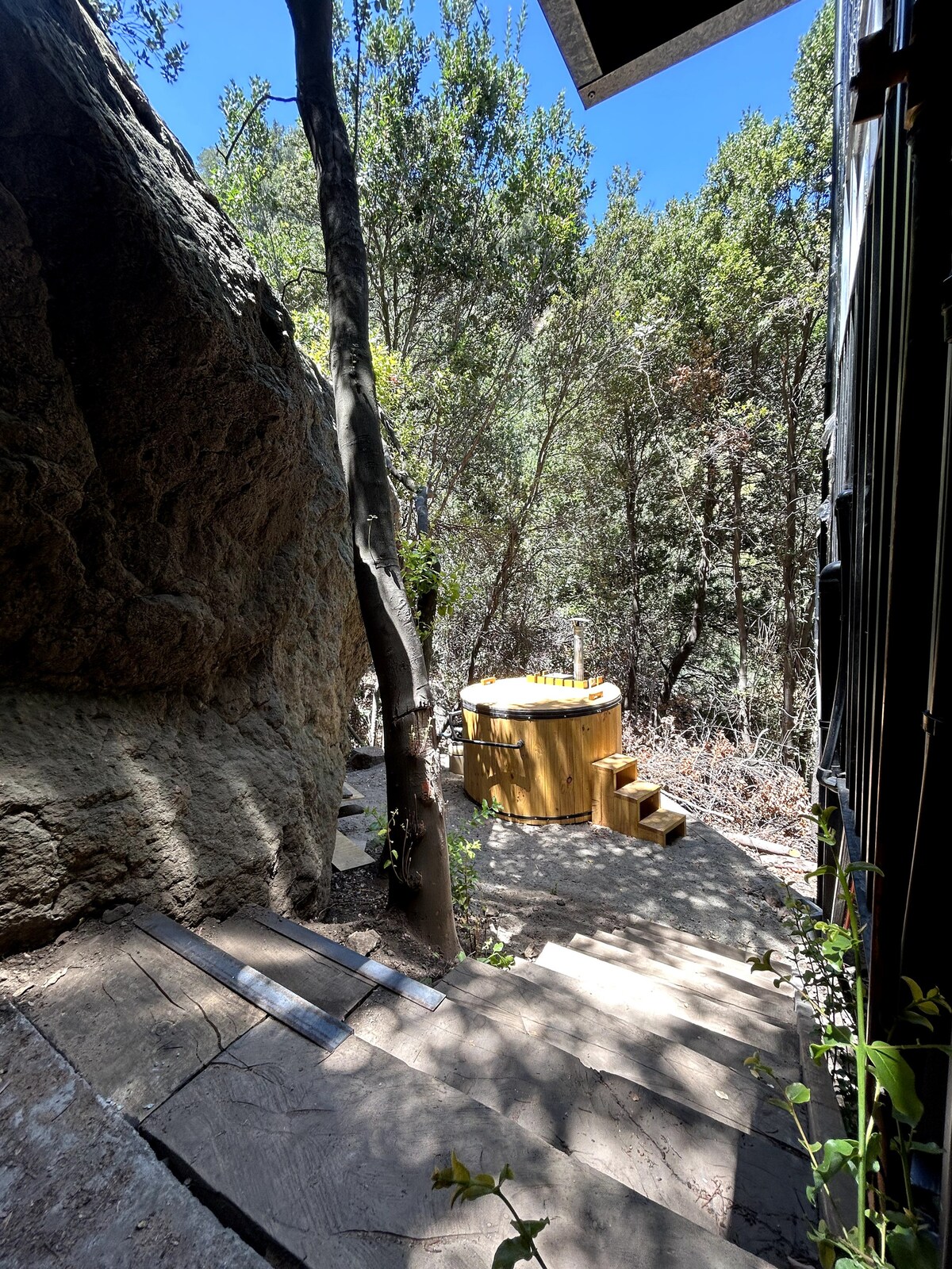 İki mərtəbəli 150 M2 minimalist ev, unikal memarlıq, yerli meşənin ortasında, vadiyə tamamilə aydın mənzərə, böyük Tinaja, açıq mətbəxi olan qonaq otağı, üçlü hündürlüklü giriş zalı, iki böyük əsas yataq otağı, super çarpayı, kürək sobası ilə istilik sistemi, iki səviyyədə terraslar, manqal, Starlink İnternet, qalxmaq üçün 4x4-ə ehtiyacınız var, avtomobiliniz yoxdursa, aşağıda saxlanılır və sizi yuxarı qaldıracağıq * Tinaja ayrıca ödəniş edilir. *Masajlarımız var.