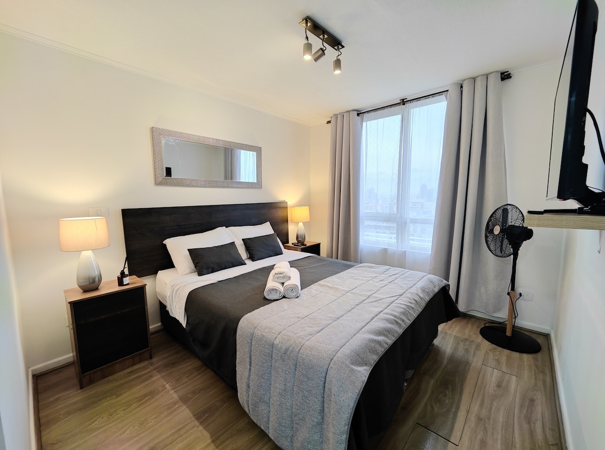 ¡Ubicación inmejorable en Santiago Centro! A solo 50 m del Metro Santa Lucía y a pasos del Cerro Santa Lucía, cafés, comercios, bancos y Clínica/Hospital UC. Piso 9, luminoso y silencioso. WiFi rápido, TV, cocina equipada y lavadora en el depto. Self check-in con clave, puerta reforzada y conserjería 24/7 para mayor seguridad. 2 dormitorios, ambos en suite: principal cama queen y segundo con 2 camas individuales. Estacionamiento en el edificio (costo adicional). A 1 estación de Barrio Lastarria.