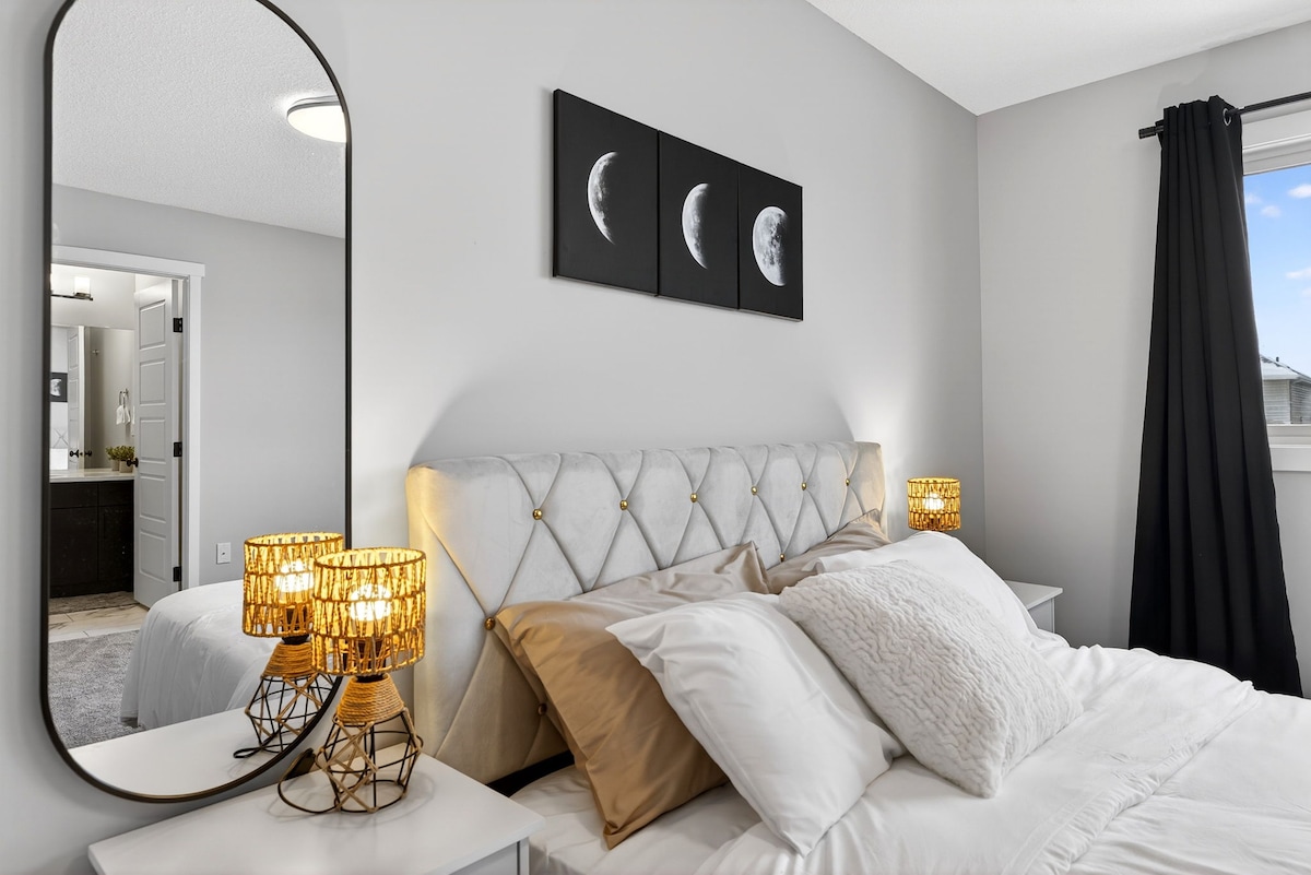 Enjoy a stay in this modern, stylish home in Edmonton—perfect for families and small groups. The space offers 3 comfortable bedrooms and 2.5 bathrooms, including two full bathrooms upstairs and a convenient half bath on the main floor. Bright, spacious, and fully furnished for a relaxing stay. Guests also have access to private garage parking. Ideal for both short and long stays. This is a full home and not a basement suite, offering privacy and comfort for your entire stay.