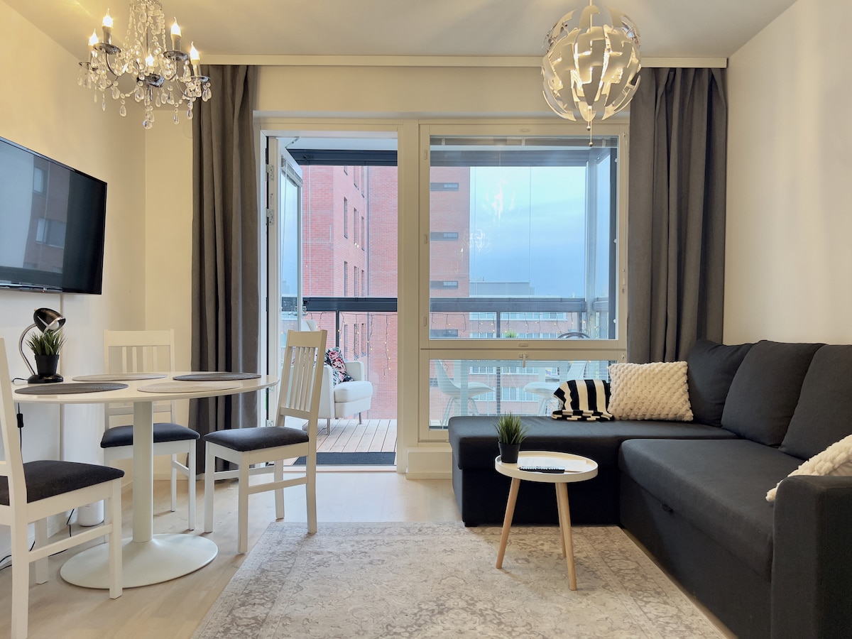 Şəhər və park mənzərələri və böyük balkonu olan Helsinkinin mərkəzindəki bu evdə oyanın - əsl Skandinaviya təcrübənizi tamamlamaq üçün yavaş Skandinaviya səhərləri, təmiz hava və uzun yay günəş batmaları. Ən yüksək reytinqli restoranlar və 24/7 ərzaq mağazası bir neçə addımlıq məsafədədir. İdman zalına giriş + rahatlıq üçün pulsuz parkinq. ✔ Yaxşı təchiz olunmuş mətbəx ✔ Uyğunlaşan giriş ✔ İdman zalına giriş ✔ Elektromobilin doldurulması ✔ Sürətli Wi-Fi · Disney+ və PS4 ➟ 4 tramvay xətti ⌘ Mərkəzi Stansiyaya 12 dəqiqə 🛳 Tallinn bərə 400 metr 🏷 Baqqal 60m/24/7 🍽 Restoranlar və kafelər 🛝 Parklar ⛸ Buz meydançası