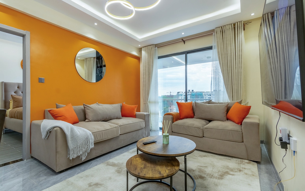A calm, stylish escape in the heart of Kilimani. This thoughtfully designed apartment blends warm earthy tones, soft lighting, and natural textures to create a cozy, modern stay. Relax in the sunlit living room with its rust-toned sofa and curated art, enjoy meals in the sleek dining area, or cook in the fully equipped kitchen. At night, unwind in a serene bedroom. Perfect for solo travelers, couples, or families seeking comfort, style, and convenience.