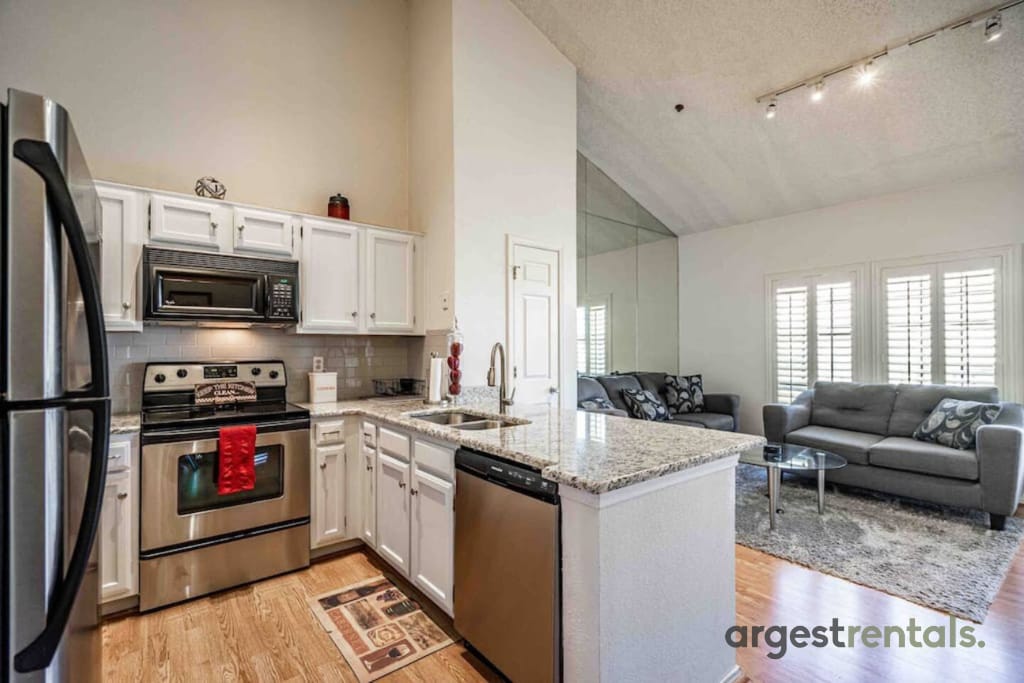Rahatlıq, komfort və inkişaf axtaran səyahətçilər üçün mükəmməl təyinat nöqtəsi olan Texasın Dallas şəhərində evdən uzaqdakı evinizə xoş gəlmisiniz. Rahat korporativ yaşayış yerimiz peşəkar ehtiyaclarınızı nəzərə alaraq hazırlanmış müstəsna istirahət yeri təklif edir. ✔ Tam təchiz olunmuş mətbəx ✔ Rahat Studiya çarpayı/çarpayı 150-179 sm ✔ Bir 4k UHD 65in Ağıllı Televizor ✔ Ofis İş Sahəsi ✔ Lifli İnternet ✔ Pulsuz Parkinq