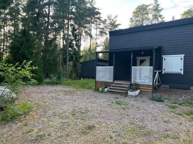 Featured in Airbnb Unique Stays - Three Cabins That Break the Mold Modern house with huge windows and balcony around the house. Great garden towards the forest. It feels like your in a treehouse when in the living room. - Sauna to rent in the garden. - 450 meters to the lake. - Climbing wall, trampoline and slackline in the backyard. - Great internet connection. Two bedrooms and a huge kitchen/living room with a fireplace. Perfect for 4-5 guests or a family who likes to cook, play and swim.