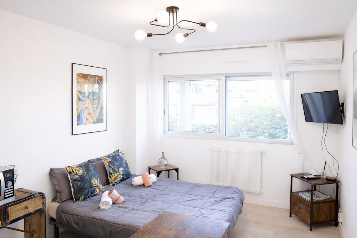 Kannın mərkəzində yerləşən bu gözəl mənzil Kruazet, Palais des Festivals, çimərliklər, Forville bazarı və Suquet rayonundan cəmi 7 dəqiqəlik piyada məsafədə yerləşir. 4 nəfərə qədər yerləşə bilən, balkonu olan tam təmirli mənzil - 1 çarpayı ölçülü çarpayı! Tətillər və ya konfranslar zamanı çantalarınızı qoymaq üçün mükəmməldir Tam təchiz olunmuş mətbəx, kondisioner Binanın yanında mağazalar və ictimai nəqliyyat Qatar stansiyası 3 dəqiqəlik piyada məsafədə yerləşir