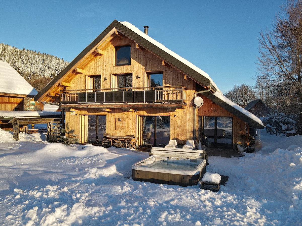 Notre chalet indépendant, sans vis à vis, entre lacs et montagnes est idéal pour les couples amoureux de la nature désirant se ressourcer au calme. Le chalet ne convient pas aux enfants ni aux bébés. A 650 m d'altitude, la vue à 180° depuis la terrasse est exceptionnelle sur les montagnes environnantes. Animaux non admis. On peut y observer fréquemment des rapaces et autres oiseaux ainsi que de grands animaux ( cerfs, biches ) selon la saison.