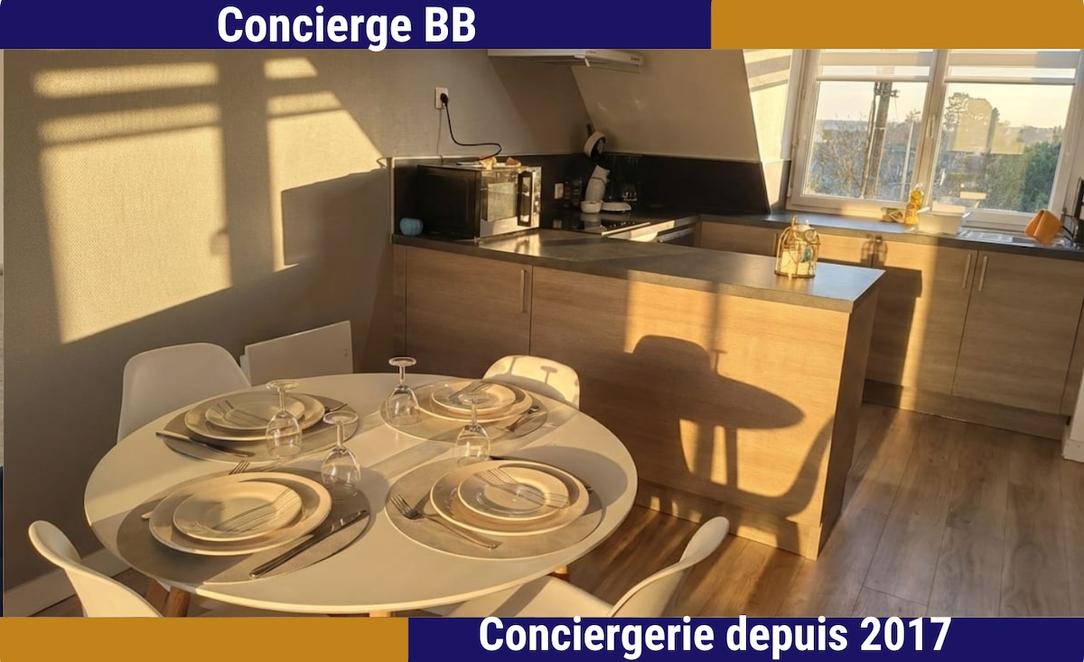 Şəhərin mərkəzinə və mağazalara 5 dəqiqəlik məsafədə, Lesnevendə ideal şəkildə yerləşən 2-ci mərtəbədəki rahat mənzilimizə xoş gəlmisiniz. Yaxınlıqdakı GR34, çimərliklərdən 15 dəq, Brestdən isə 30 dəq məsafədə zövq alın. Gəzinti, dəniz və irs arasındakı şimal Finistère sahillərini araşdırmaq üçün mükəmməldir. Breton tətili axtaran ailələr və ya dostlar üçün ideal olan 3 yataq otağı, rahat qonaq otağı və təchiz olunmuş mətbəxi olan geniş qonaqlama yeri. Sizə ev sahibliyi etməyi səbirsizliklə gözləyirəm ✨