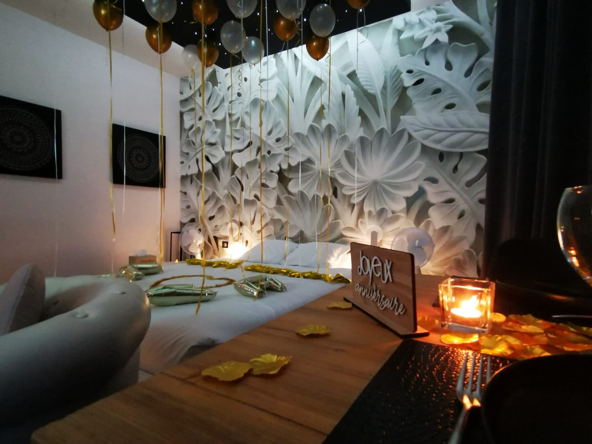 Bu mənzil 2 nəfərlik romantik qaçış üçün mükəmməl yerdir 🥰 Çimərliyin yaxınlığında ideal şəkildə yerləşir, bir neçə yüksək səviyyəli istirahət imkanı var: * Cakuzi (hər keçiddə su dəyişdirilir), * Sauna, * Tropik Duş, * Buxar Buxarı, * Ulduzlu səma ilə King ölçülü çarpayı * Yataq otaqları və quraşdırılmış Bluetooth dinamik * Düz ekran 170 sm Ambilight cakuzi ilə üzbəüz Bir sözlə, mükəmməl romantik bir qaçış üçün bütün açarlar!