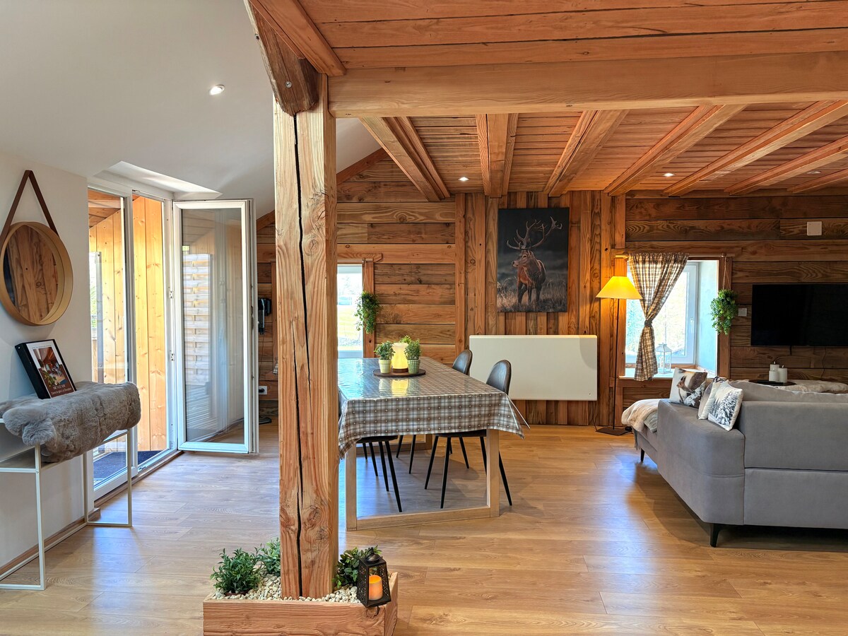 Bu dinc 66m2 dağ evi bütün ailə üçün rahat qonaqlama təklif edir. Bütün səs-küydən uzaq yaşıl mühitdə sakitlik və mənzərənin dəyişməsini təklif edir . istirahət və gəzinti (göllər , şəlalə ...) üçün ideal yaşayış mühitini qiymətləndirəcəksiniz. Gölməçənin və dağın mənzərəsi olan çox gözəl balkon. Mənzilə ikinəfərlik çarpayı və paltardəyişmə otağı olan bir yataq otağı daxildir, qonaq otağına uşaq üçün əlavə çarpayı daxildir. Çanağı , duşu və tualeti olan hamam otağı.