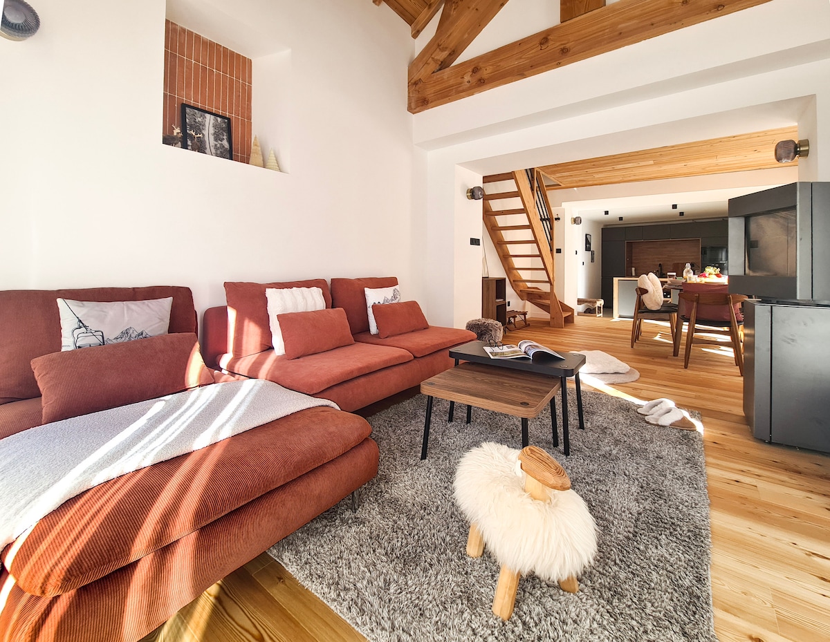 Geniş dağ evi, 4 ulduz, xüsusi açıq girişli sauna, bağça, böyük terras, barbekü, günəş çarpayıları, dağ mənzərəli 4 yataq otağı, 2 balkonlu, 2-si 15 m2, "Ağıllı TV" TV - 4K UHD, 1 vanna otağı, 2 duş otağı, qabyuyan maşın, paltaryuyan maşın, quruducu, raketka maşınları, iskele, fondu, xüsusi parkinq, xizək anbarı, xizək çəkmə quruducusu. Hər 30 dəqiqədən bir 200 metr məsafədə avtomobillə və ya pulsuz servislə 3 dəqiqəyə xizək yamaclarına asan giriş.