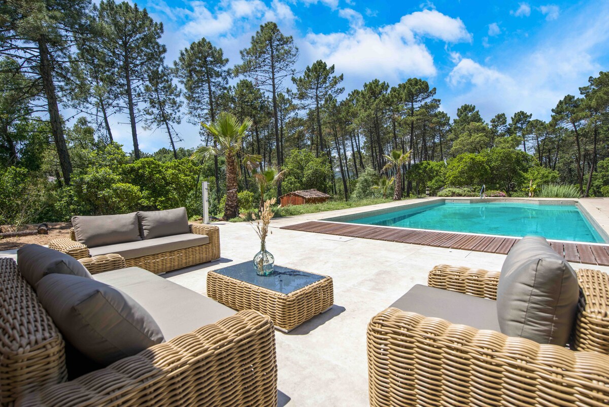 ÜZGÜÇÜLÜK HOVUZU (isidilməmiş) və müstəqil STUDİYASI olan, yaşıl mühitdə, vizasız, mütləq sakitlikdə bir hektardan çox ərazinin əmlakı olan, maksimum 8 böyük (+ uşaq/körpə) müvəqqəti villa. 8/10 nəfərin rahatlığı üçün hər şey var: təhlükəsiz əmlak, böyük cənuba baxan terras, hamam otağı olan 3 böyük yataq otağı (biri 2 a.g. arasında paylaşılır), 11m x 4 üzgüçülük hovuzunun müstəqil studiyası Sainte Maxime-dən 20 dəqiqəlik rahat vahə Ev heyvanlarına icazə verilir: təmiz it və ya pişik